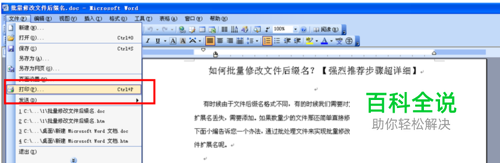 打开需要打印的word文档,如下图,找到文件--- 打印 (或者使用 ctrl +p)按钮即可出现