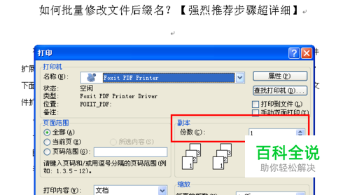 同样的操作在“打印”页面的顶部,打印”按钮旁边是带有向上和向下箭头的标记为“份数”的框,以便您选择此文档要打印的份数。如下图