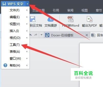 其实去掉这些标记符号很简单,我们点击菜单栏中的最左上角的下拉三角形,在弹出的菜单中鼠标移动到工具选项上。