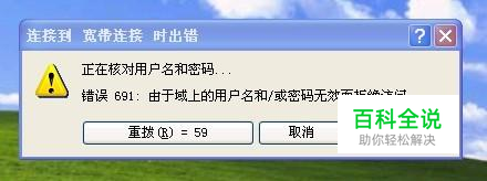 这是出现频率最高的错误提示,主要原因是账号密码错误提示。 出现691错误提示有可能是以下几种原因,请确认:1.1输入的上网帐号(上网客户名)或密码填写错误导致,首先请找出客户的客户名和密码,核对一下,重新再输入一次。如下图显示,客户名和密码都需要区分大小写,再点一下密码旁边的白色小框,将上网密码也重新输入一遍,然后点一下连接,看是否能够正常上网。
