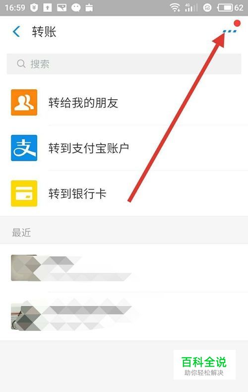 在转账页面,点击右上角的三个点“...”这个标志,如下图所示:
