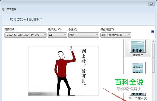 彩色喷墨打印机怎么把彩色图片打印出黑白的 2025-06-08 15:53:29 彩色照片打印出黑白效果 操作方法 01 打开你要打印的图片 点击打印 02 如图:点击蓝色的 “选项” 03 如图:点击打印机属性 04 找到“灰度打印”把他勾上 05 点击确定完成 赞 (0) 相关推荐 爱普生彩色喷墨打印机单色打印绝招 用过爱普生彩色喷墨打印机的用户可能都会遇到这么一种情况:由于其彩色喷墨系列打印机的黑色墨与彩色墨为两个相互之间完全独立的墨盒,其中任何一个墨盒无墨时,都会导致打印机无法正常继续工作。这就间接造成了在彩 ... HPDesKJet1110_1112彩色喷墨打印机不能正常打印 解决惠普DesKJet1110_1112彩色喷墨打印机,只能打印校准页不能打印文档的驱动程序不兼容问题,官网下载的驱动,能正常安装,电脑和打印机都完好无损,可是打印机却不能正常工作. 操作方法 01 ... 怎么将Windows10的彩色图片打印成黑白图片? Windows10系统的彩色图片如何打印成黑白的?跟着小编一起来看看教程吧.方法如下:一.使用win10自带的图片查看器打开.查看彩色图片,点击"打印"选项.(快捷键为[contr ... 喷墨打印机指示灯闪亮但不打印怎么办 喷墨打印机发出打印命令后打印机没有任何响应,或指示灯闪亮但不打印.可能是数据线连接不牢固或断路.重新连接数据线,确保接口.插头安插牢固,并检查字车带状电缆是否连接正常,如果不能排除故障可以尝试更换数据 ... 如何让扫描后的图片打印出来和原件大小一样? 往往在用扫描仪扫描身份证后,用Acdsee或者windows图片浏览器打开图片,打印出的与原件大小不一样。 1 最简单的方法:用Photoshop打开扫描后的图片,直接打印! 2 用一个软件,Phot ... 怎样在电脑上看图片打印出来清不清晰? 我们打印图片的时候,会发现有些图片打印出来并不清晰,今天小编就来跟大家讲讲怎样在电脑上看图片打印出来是否清晰,希望对大家有所帮助. 操作方法 01 首先打开电脑的PS,然后用ps打开需要打印的图片. ... 南京微信打印机租赁时如何正在打印出照片 微信打印机是一款帮助商家吸引粉丝的线下互动工具,消费者可以在线下关注微信打印机屏幕上的二维码,成为商家微信公众平台的粉丝,然后通过将自己想要打印的照片发送到商家的公众平台上,打印机就自动会打印出照片. ... 如何把彩色图片打印成黑白图片 自己家的打印机是彩色打印机,我们该如何将彩色图片打出黑白图片的效果呢?这里与大家分享一下具体的操作方法. WPS文字 01 打开一个空白的wps文档. 02 在工具栏点击"插入"选 ... 怎么清洗彩色喷墨打印机? 我们的彩色喷墨打印机长时间不用的情况下,打印机上的喷头有时候会堵,导致我们打印出来的照片.图案等效果不太理想,下面我来教大家怎么利用打印机的驱动来清洗打印机. 操作方法 01 打开电脑开始--控制面板 ...