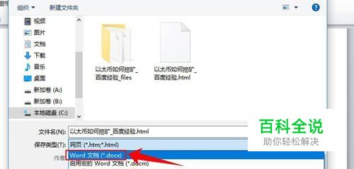 在文件保存窗口中,选择另存为文件的类型为【word文档】,然后对文件进行保存。
