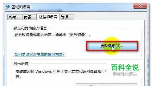 在弹出的“区域和语言”窗中继续点击“更改键盘”;