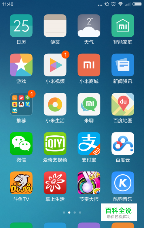 首先打开一款智能手机的主界面,找到已经安装好的百度云APP