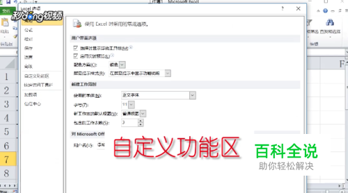 在弹出的窗口中点击“自定义功能区”。