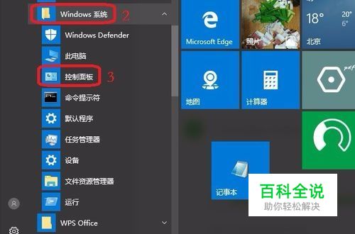 参照下图标识出的步骤,一步步点击打开‘控制面板’。