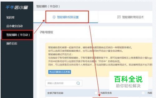 子账号授权:点击智能辅助(半自动)---智能辅助权限设置----授权子账号