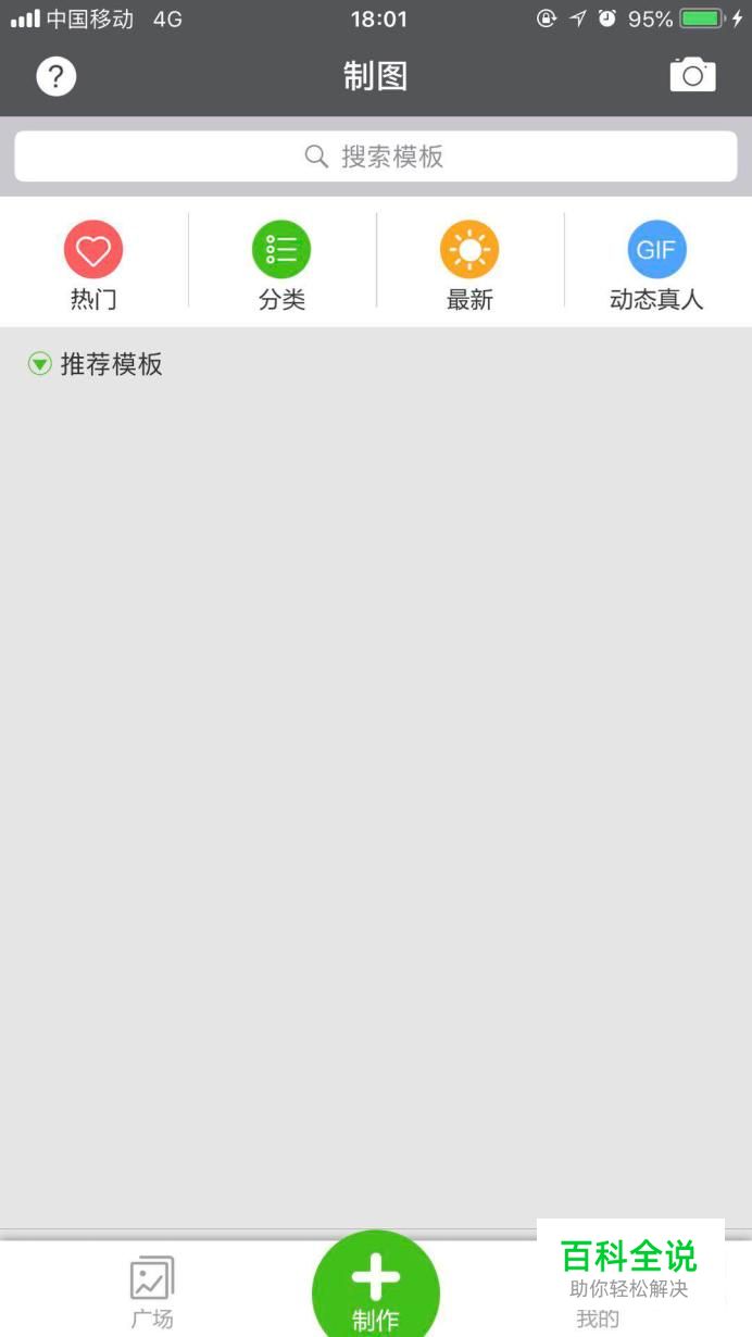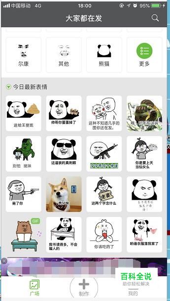 下载斗图APP后,广场界面是最新的表情,一般当天都会更新,点击中间的加号“制作”。