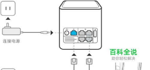 连接线缆:用网线将路由器的WAN口(蓝色网口)连接到因特网(如宽带猫、光猫等),连接电源。将电脑连接到路由器的LAN口(黄色网口,部分产品LAN口为灰色或黑色网口)(或者将电脑或手机连接到路由器的Wi-Fi)