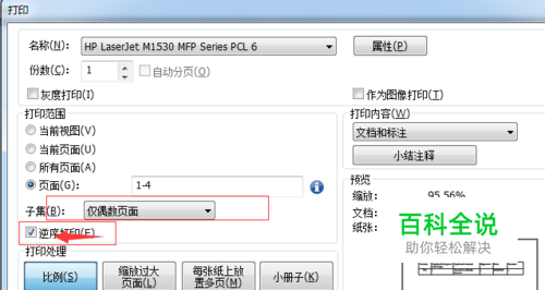 2.重新选择偶数页,点击逆序打印(关键),然后打印。测试成功!