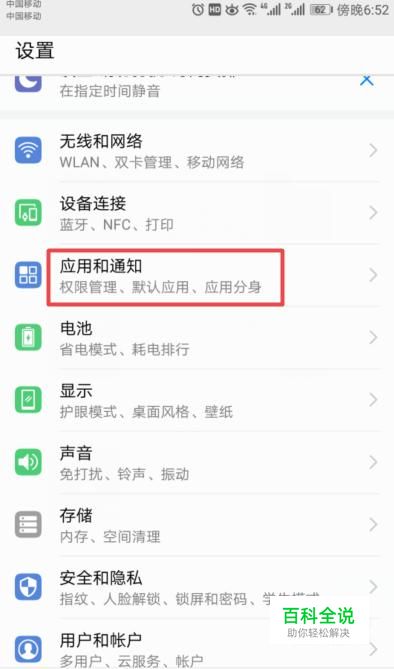进入设置后,我们点击应用和通知;