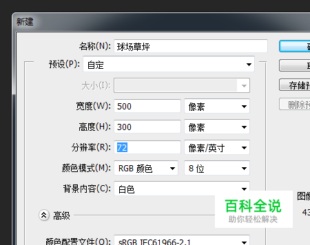 新建一个500 * 300像素的画布。
