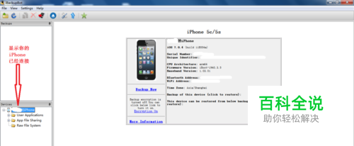 将iPhone连接电脑,并打开iBackupBot软件,这时连接的iPhone会在软件的Devices视图栏显示。如图: