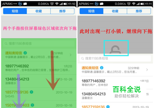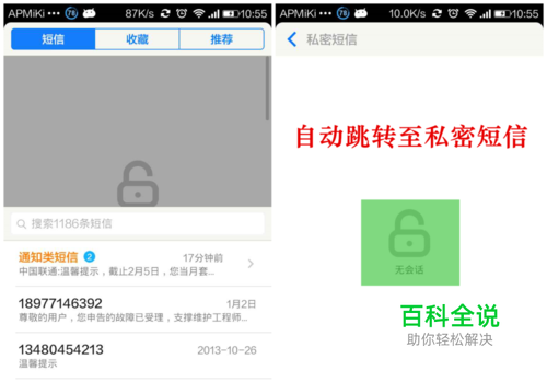 当完全看到一个小锁时会自动跳转进入了私密短信界面。