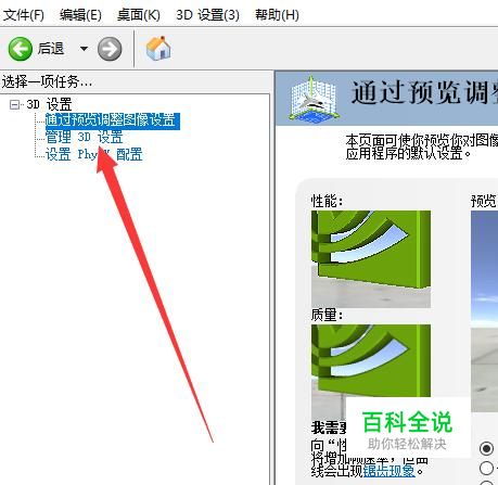 进入之后,点击“管理3D设置”,进入下一页面,如图所示。