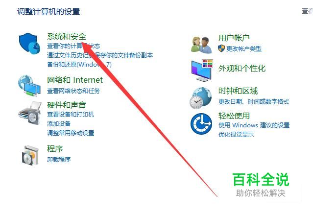 进入之后,点击“系统和安全”,进入下一页面,如图所示。