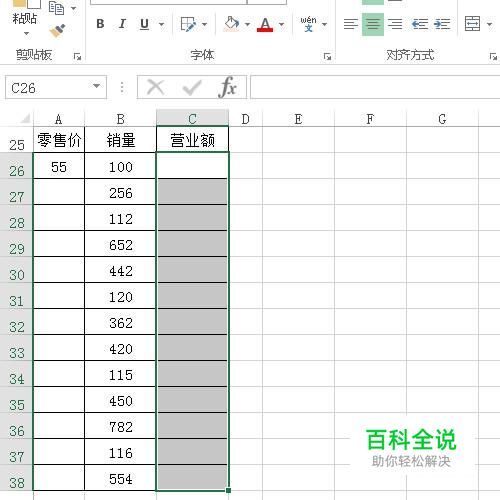 下图中由销量乘以零售价得到营业额;那么,A26单元格内的零售价是固定的。
