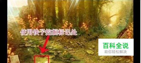 接着,我们看见做左边草地上有一个小坑,坑里面好像有一个件物品,点击放大查看(如图红框所示)。