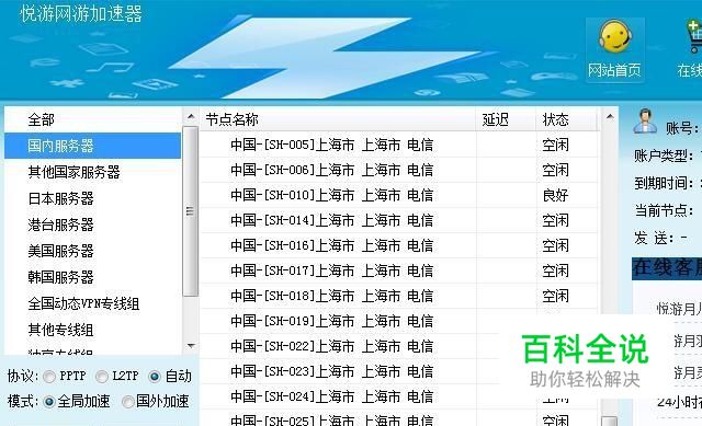 现在电信 移动(铁通) 教育网 联通 国内目前常见的网络,然而随着移动的崛起,目前移动的网络也开始进入到大大小小的家庭中去了,那么很多移动的客户就开始抱怨了,玩游戏怎么这么卡,看网站也很卡,无论怎么使用这个网络都很卡,那么如何来解决这移动网络的卡呢,这是我的一点点经验分享给大家。 ①首先下载悦游代理 ②然后登陆上去 选择节点 ③单击一个节点就是选择了这个地区 ④然后点击链接即可 ⑤加速成功后打开你的搜狗搜索查询下地址后就可以正常进入游戏了!
