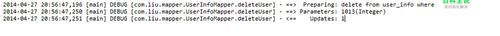 映射文件: userinfo.xml <!-- 删除 用户信息--> <delete id="deleteUser" parameterType="int" > delete from user_info where user_id=#{userId} </delete>