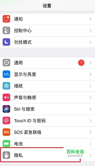 首先,我们打开苹果手机的设置界面,控制屏幕向下滑动,找到并点击“隐私”选项。