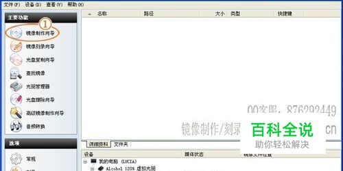 用一张win7系统安装光盘,打算制作成iso镜像文件保存在电脑上作为例子。打开软件,将光盘放入光驱中,再打开镜像文件制作软件,如下图,在左边的树型选项中选择“镜像制作向导”。