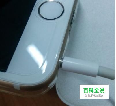 首先将苹果耳机插入手机的耳机孔,如下图所示。