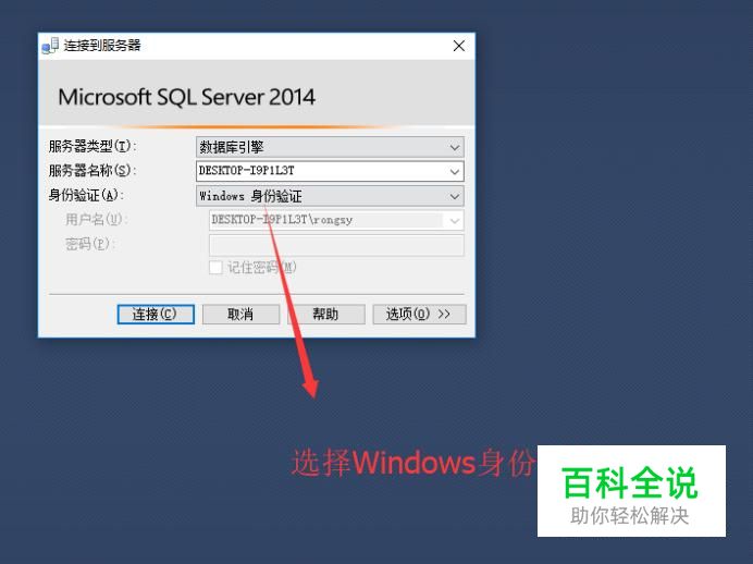 接下来我们切换登录方式,将登录方式切换到Windows身份验证,如下图所示