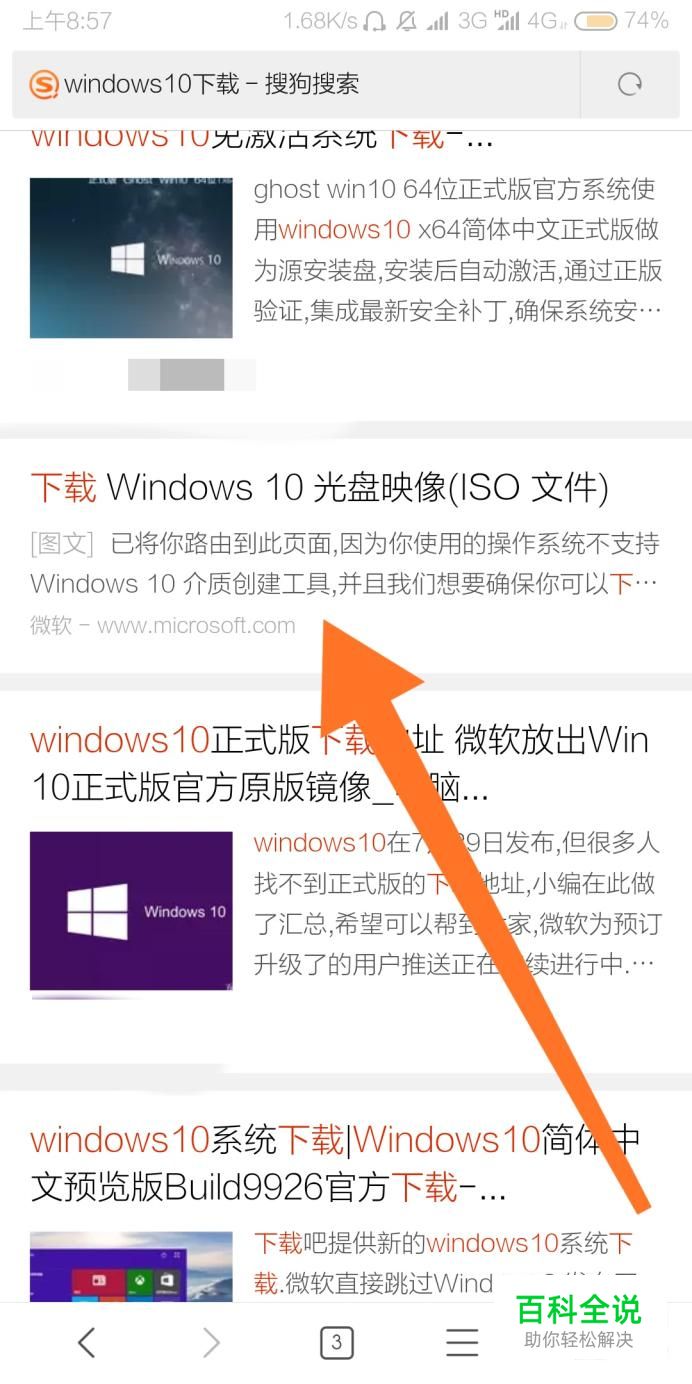 然后找到“下载Windows10光盘映像(ISO文件)”搜索结果,点击进入。
