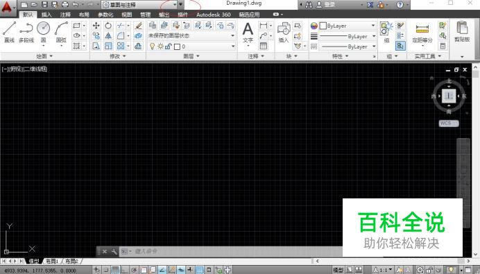 唤出AutoCAD 2014辅助设计软件窗口,如图所示。点击自定义快速访问工具栏向下箭头,下一步将进行打开DWG图形文件的操作。