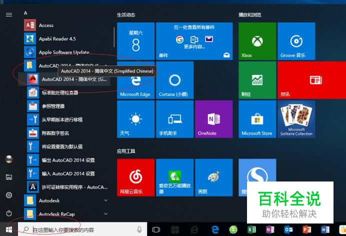 如图所示,拖动右侧垂直滚动条。展开"AutoCAD 2014-简体中文(Simplified Chinese)"文件夹,点击"AutoCAD 2014"项。