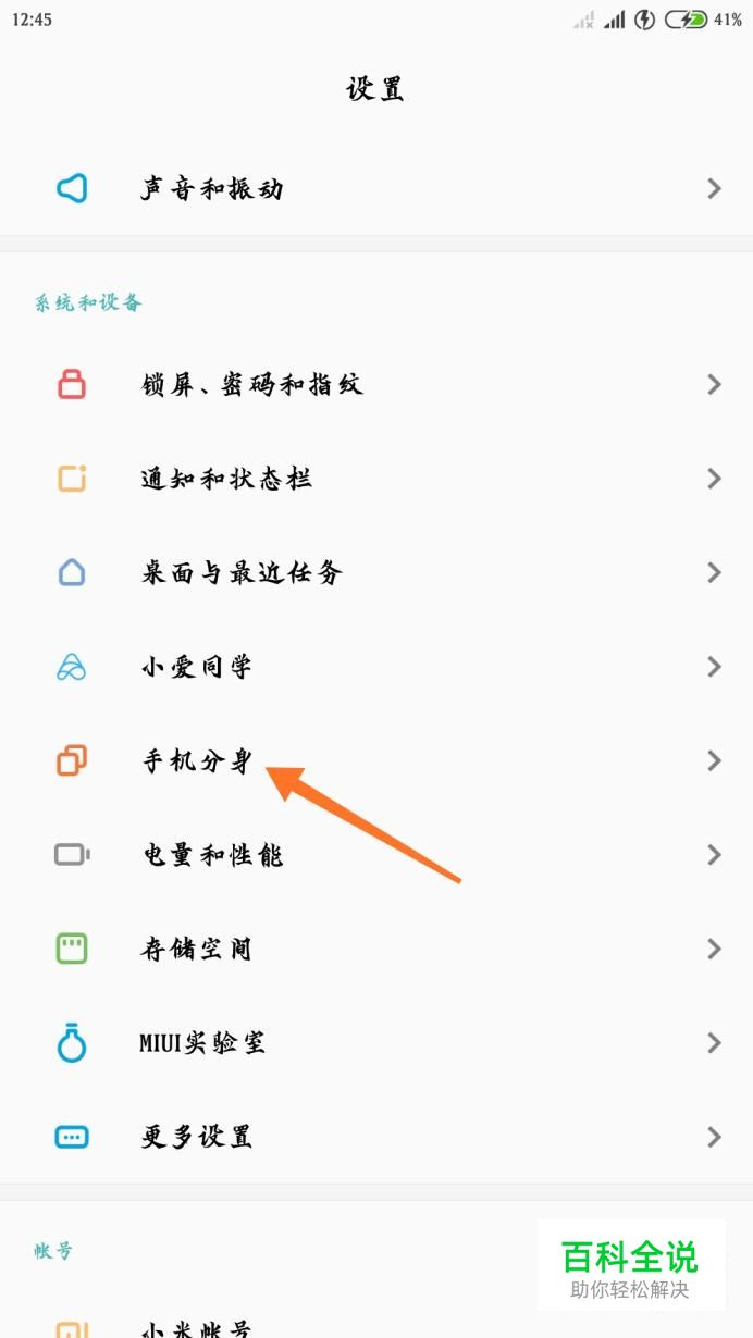 打开红米手机的设置,找到“系统和设备”里面的“手机分身”,点击打开。