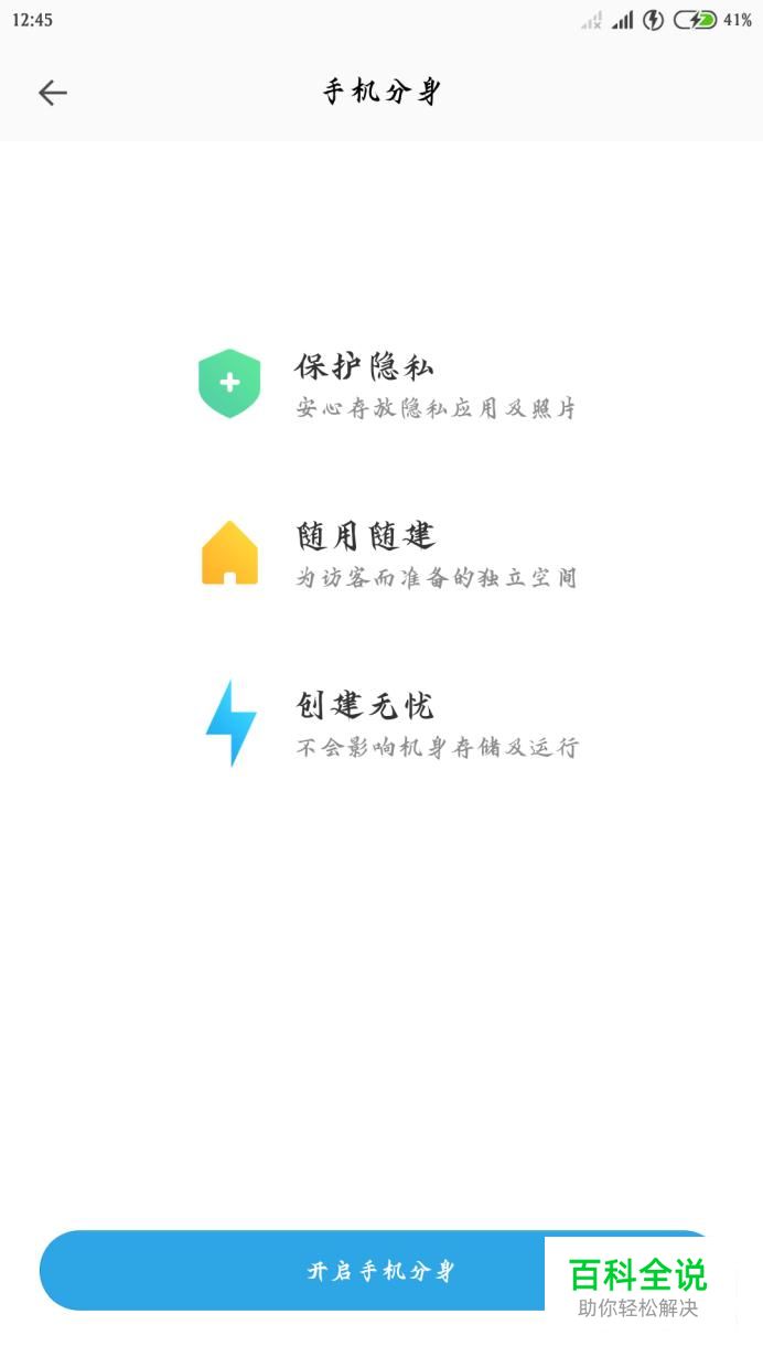 点击“开启手机分身”,系统就会自动切换到分身,如图所示。