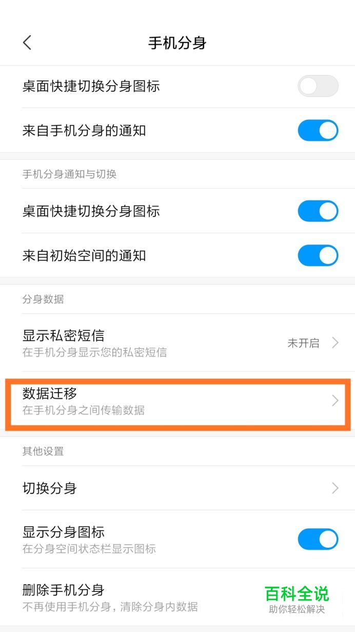 打开分身里面的“手机分身”,即可设置分身和数据迁移。