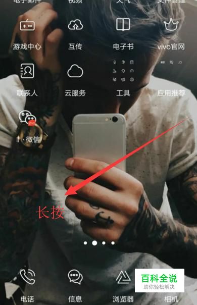 进入之后,长按手机页面的空白地方,如图所示。