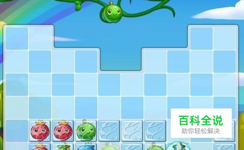出现蓝莓,将蓝莓移动到左中间,起到清除蓝莓作用。
