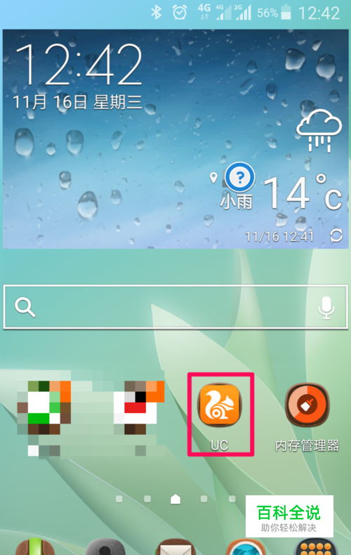 点击手机应用程序图标打开uc浏览器打界面。如图所示: