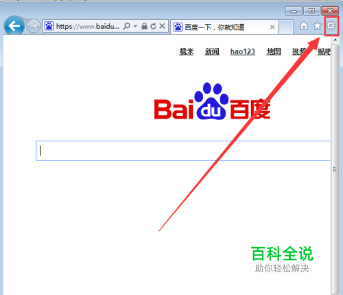 打开IE浏览器之后,我们点击浏览器右上角的齿轮图标 如图