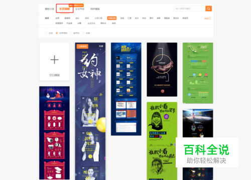2、进入模板市场,选择兔展一页,选择合适的模板,或点击“+”,创建空白模板