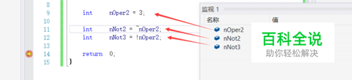 对操作数的每一位进行反码操作,也就是说,对于每一位而言,如果这一位是1,那么结果就是0,如果这一位是0,那么结果就是1; ① 完成下图的代码; ② 使用快捷键F5进入调试模式; ③ 使用快捷键Ctrl+Alt+W,1,调出监视窗口; ④ 在监视窗口使用16进制显示; 由于16进制的每一位对应到2进制中就是4位,所以 对2进制的每一位取反,相对于16进制而言就是用16进制的F(10进制的15)减去当前位的值,所以 ① 由于-1的16进制是0xffffffff,所以对他的每一位取反就是: 等价于:0x(f-f)(f-f)(f-f)(f-f)(f-f)(f-f)(f-f)(f-f) 等价于:0x00000000 于是结果就是0 ② 由于 12345的16进制是 0x00003039: 等价于:0x(f-0)(f-0)(f-0)(f-0)(f-3)(f-0)(f-3)(f-9) 等价于:0xffffcfc6