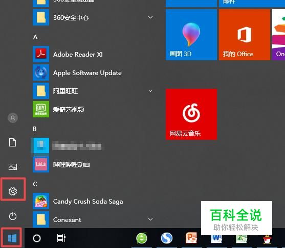 首先,我们点击电脑桌面左下角的微软按钮,弹出的界面,我们点击设置;