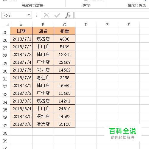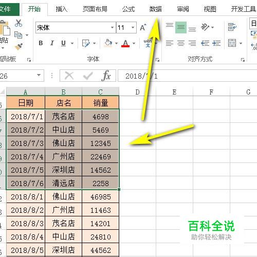 以下图中的表格数据为例演示操作方法。接下来,要把表格数据按月分组。