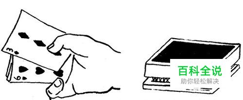 其实,左手的三只手指(亦或只用无名指)的背面跟左手拇指配合,已把右手牌叠牢牢的上压下顶住,一直没有松的右手,把牌叠抽出,这里.只要用力适当,左手上压下顶的各一张牌便不会随右手牌叠同时被抽出,留在左手的牌叠上。