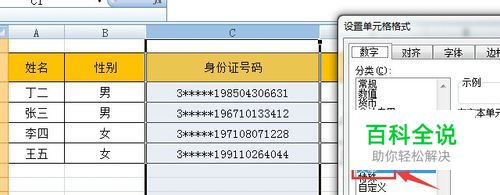 首选录入信息时,录入身份号那一列全部选中,设置单元格格式中选“文本”,避免出现图2这种情况。