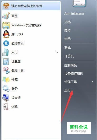 2、卸载完成后,我们还应当删除对应的注册表项目,才能保证彻底卸载完成,打开电脑左下角开始菜单,找到运行选项打开;