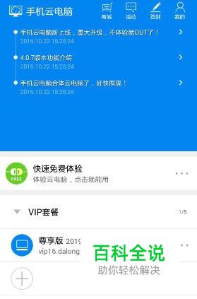 注册之后进入应用,点击“快速体验套餐”或者是“VIP套餐”,进入云电脑桌面