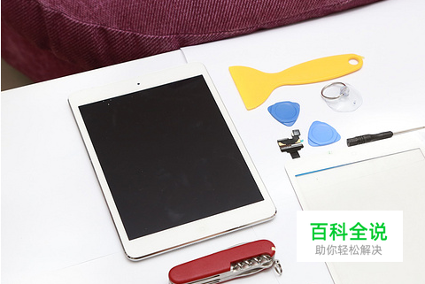 ipad屏幕比较大,一般不容易弄成那种粉碎的,所以我们直接从屏幕两侧撬开即可,小刀并没有什么风险,首选小刀,简单粗暴。将小刀的刀口对准屏幕和边框的缝隙插进去,然后把刀头插进去即可。刀不要往里面插,放在刮伤液晶屏,稍稍把刀向刀刃对着的方向推动一下,划出一道缝。注意红圈处有排线,撬屏时候注意一下,最好最后弄这里。