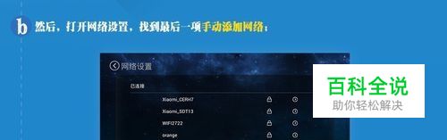然后打开“网络设置”,拉到最底,找到最后一项“手动添加网络”: