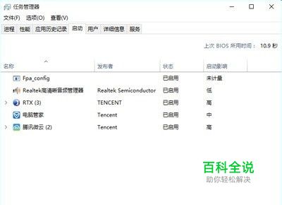 与Windows7以及之前的系统不同,在Windows8以及之后的Windows 8.1和Windows10系统中,开机启动项的管理被移到了任务管理器里面。您可以尝试用这种方式进入任务管理器的“启动”标签: